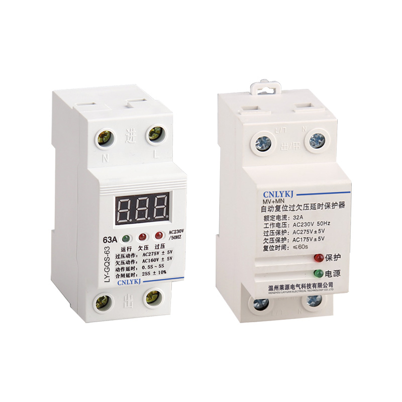 LY-GQS過欠壓延時保護器(以下簡稱保護器)是根據(jù)目前市電狀 況開發(fā)的新一代家電保護裝置。能在電壓異常的情況下起保護作用,當(dāng)市電 電壓起超過或低于保護器動作電壓值時,保護器能迅速、可靠地切斷負載電 源,以達到保護電器和人身安全。當(dāng)市電電壓恢復(fù)正常時,保護器自動接通 電源,恢復(fù)供電,實現(xiàn)全自動控制。面板上的數(shù)碼管顯示當(dāng)前輸入電壓值, 當(dāng)前電壓值在正常范圍內(nèi)時接通負載,當(dāng)前電壓值高于或低于正常保護范圍 時切斷負載電源,對應(yīng)過壓或欠壓指示燈亮。本產(chǎn)品具有使用簡單方便、性 能穩(wěn)定可靠的特點。產(chǎn)品結(jié)構(gòu)緊湊、外形美觀。采用標準35mm導(dǎo)軌安裝方式。